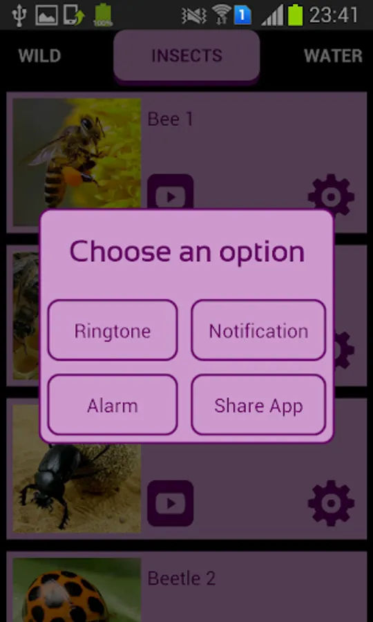 * Set these animal calls for your android phone as : Ringtone, Notification, Alarm with the help of our user friendly app. Only you have to touch our app setting button available with every animal and select options popped up as required and enjoy your daily life with amazing animal sounds & ringtones.