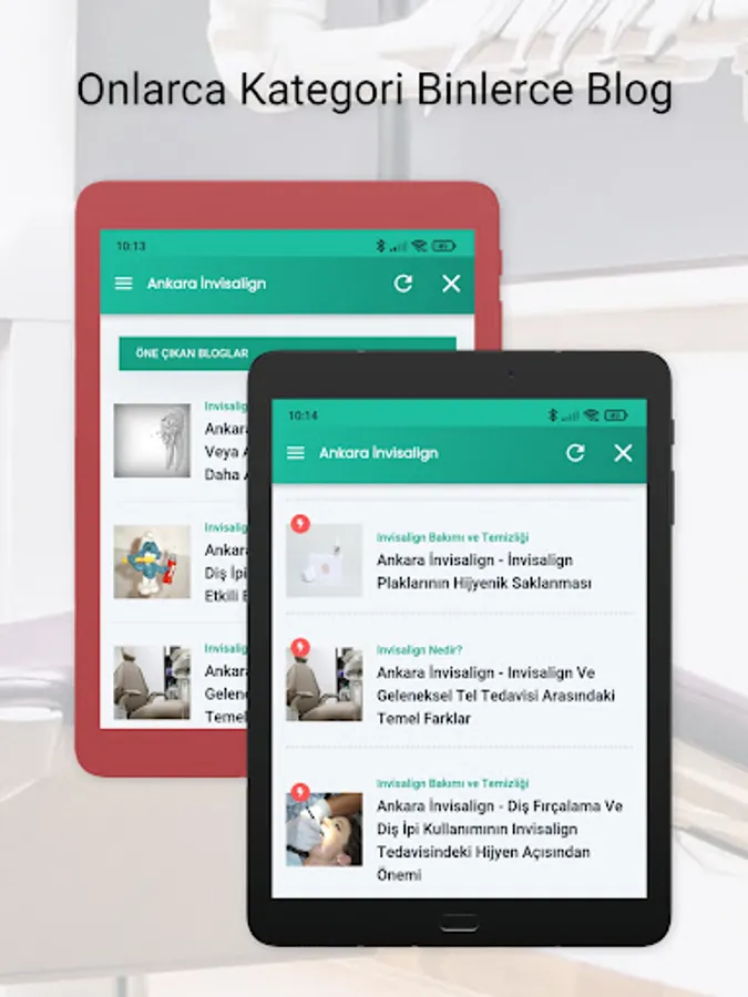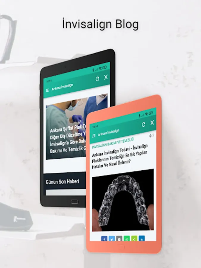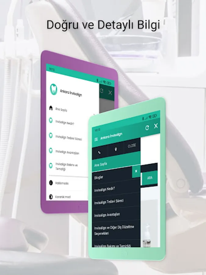 Ankara Invisalign Application is a mobile application in the Google Play Store with its rich content where you can easily find valuable information about oral and dental health, braces and clear aligners, invisalign treatment. This application is an ideal guide for those who want to protect their dental health, have information about dental care and follow current developments in the field of braces and invisalign.