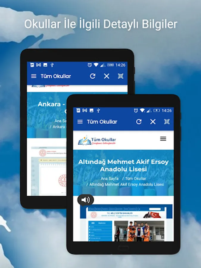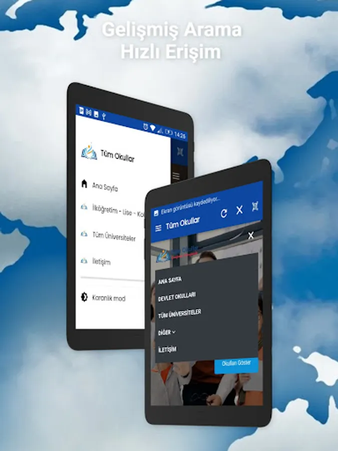 Schools in Turkey: The application contains lists and profiles of all schools in Turkey. You can easily access the school's promotional information and contact information at every level.