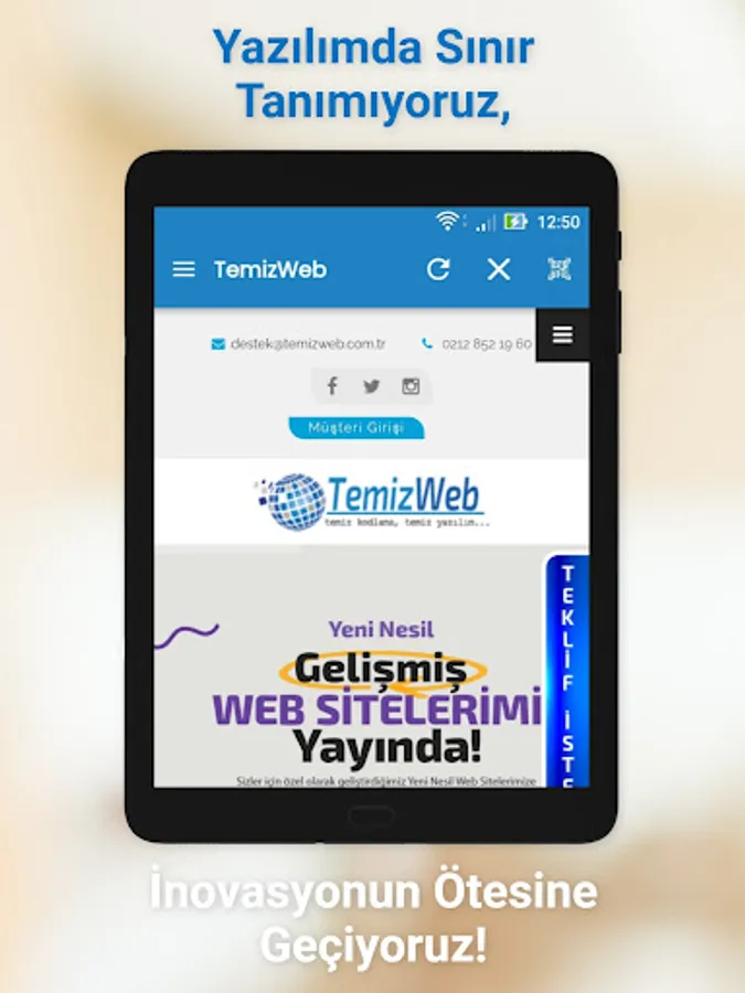 Discover the future with TemizWeb Software Services. Take your business one step ahead in the digital world with customized software solutions tailored to your needs. Download our app and experience the unlimited potential of technology!