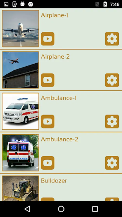 * Play the amazing voice of most famous vehicles by simply touch play button.