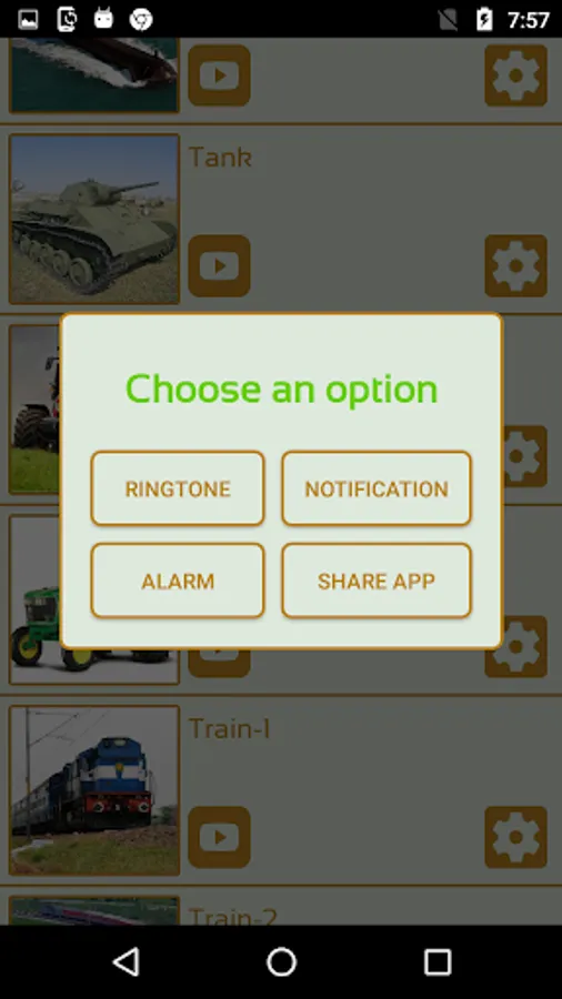 * Set these vehicles calls for your android phone as : Ringtone, Notification, Alarm with the help of our user friendly app. Only you have to touch our app setting button available with every birds and select options popped up as required and enjoy your life with rocking energetic vehicle sounds & ringtones.