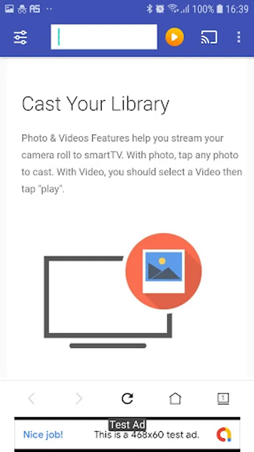 3. Browse to your favorites media site and tap play your media. App will auto grab media to play icon on top for ready stream to your Smart TV