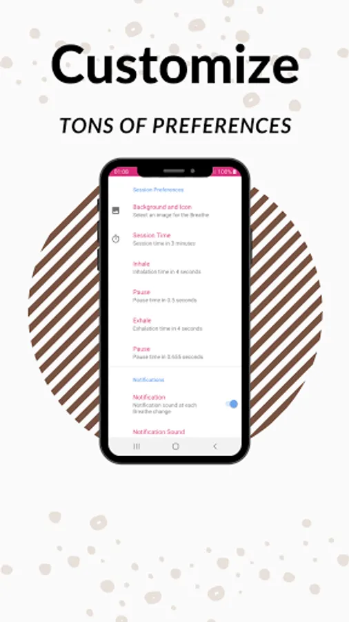 Breathing allows you to do breathing exercises with configurable times and with reinforcement of images that you like the most in the background or guide. It also allows you to configure ringtones and vibration as stimuli for turning the breathing cycle. A breathing cycle consists of Inhalation-Pause-Exhalation-Pause.