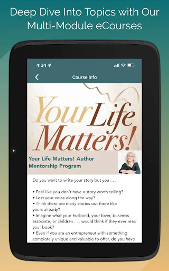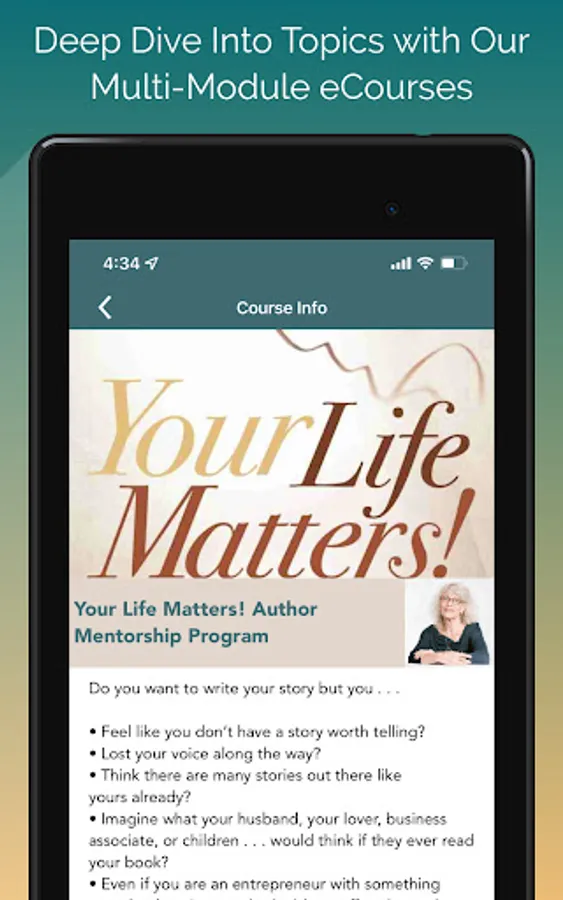 *A library of courses, including my Signature Programs: Author Mentorship, Re-Write Your Life, and Madness, Masks, and Miracles (both the program and my award-winning play to dispel myths and stigmas about mental illness).