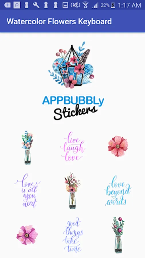 Express yourself in new ways with Watercolor Flower Quotes Stickers you can put anywhere in your chat. Discover all our sticker packs in the Google Play Store and add magic to your text messages!