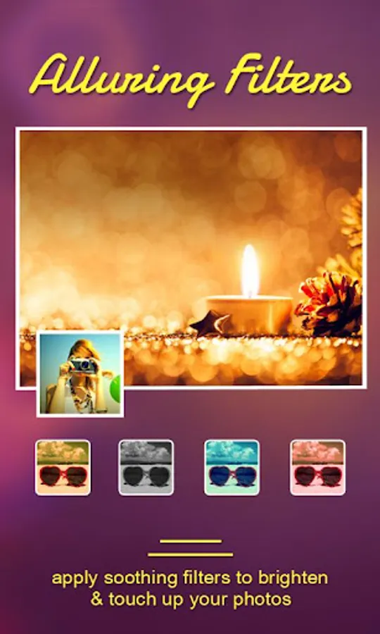 - Apply gorgeous filter effects to your photo.