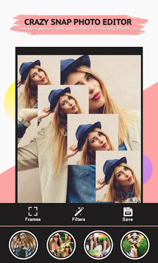 Make wonderful snappy photos and get more likes with amazing Crazy Snap Photo Editor app. You can make awesome funny photo collage with it.