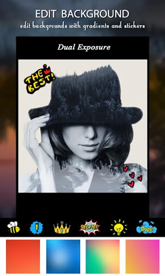 You just choose a picture and it will give you a beautiful double exposure effect.
