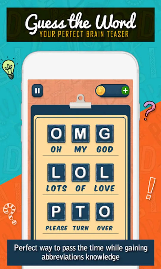 The aim of the game is to find the full form of daily life usage short form. Embrace your brain power to discover full forms. Find all the words of short form to complete a level and advance to the next stage.