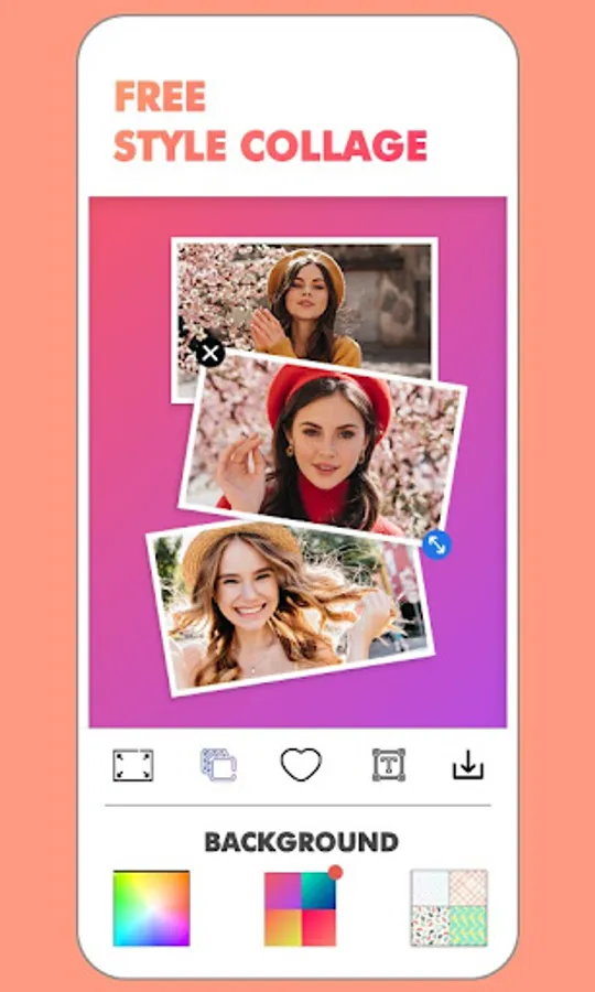 User can combine up to 16 photos in 'Freestyle' mode. User can give different Shape to Single Image.