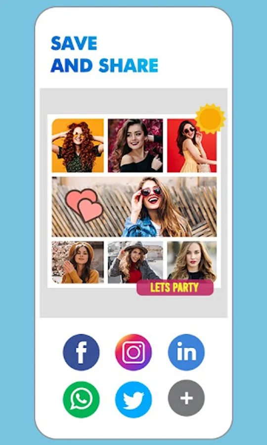 ● Share : User can share ✉ collages on Instagram, WhatsApp and Facebook with friends.