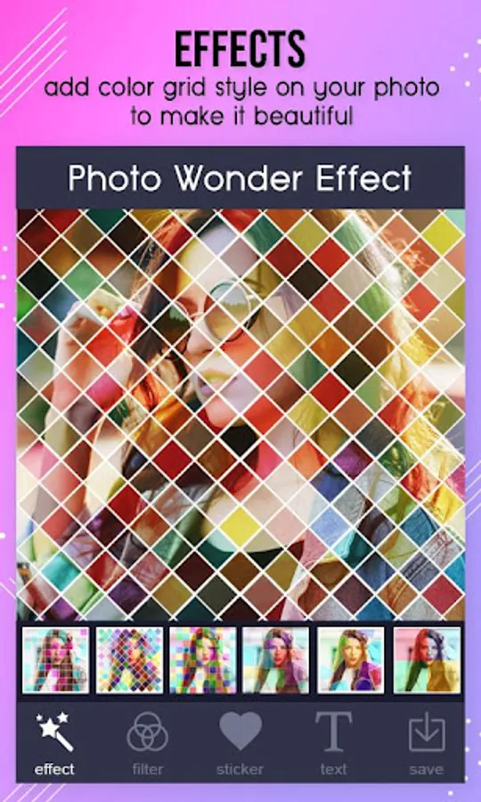 Photo wonder effect app is an amazing photo effect app. With this app turn your photos into awesome color grid effect. Make your photo look creative in seconds.