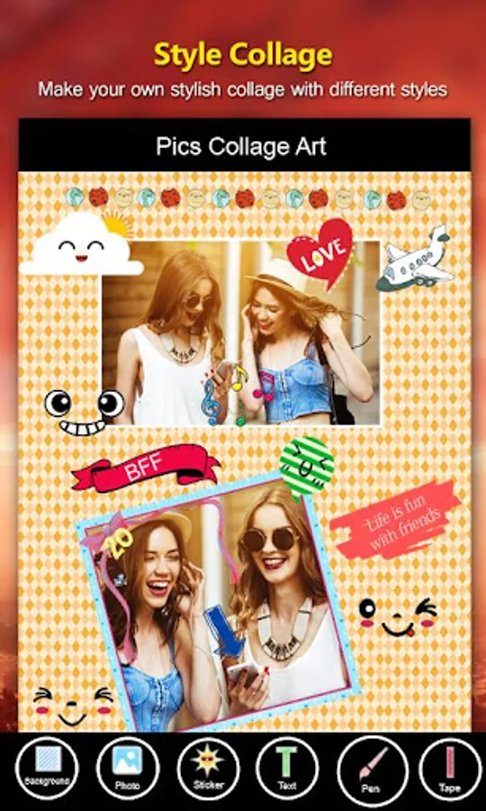 With Pics Collage Art you can record your daily life with grid photos in a colorful notepad. With this app, you can add photo frames to your photos and grid photos, and make collage of these photos.