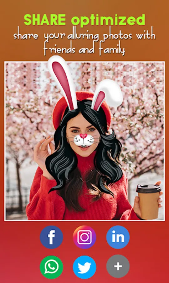 ● Take a cute selfie with our funny animal face filters like cute cat 🐱, dog 🐶, rabbit 🐰 and many more.