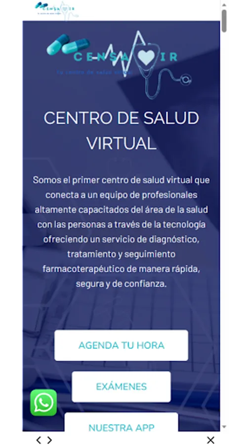 Do you have a sign or symptom of a disease and don't know what to do? Are the lines of offices, medical centers and hospitals bigger than your patience? Have you waited at the pharmacy only to be told that the product is out of stock? Do you want to help and take care of people but you don't know how to take care of yourself?... in a world of pandemic, longer waiting times and stratospherically high prices for treatments, CENSAVIR was born. We are the first virtual health center that connects a highly trained professional team in the health area with people through technology, providing a fast, safe, timely and reliable service giving advice at the level of diagnosis, treatment and follow-up. pharmacotherapeutic. We considerably reduce the response time in medical care by strategically using technology, we advise the patient in a pharmaco-economic way the treatment that best suits their needs and financial reality. We carry out pharmacotherapeutic follow-up for personalized attention that accompanies you from the presence of any pathological symptom or sign until your recovery and subsequent monitoring in parameters established jointly with the patient. As we take care of you, we reward your commitment and fidelity to the treatments and to certain challenges that we will have for you, where you can get discount coupons on products, offices, specialized advice and the best! donate treatments and services to vulnerable centers and homeless elderly people.