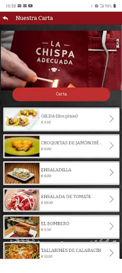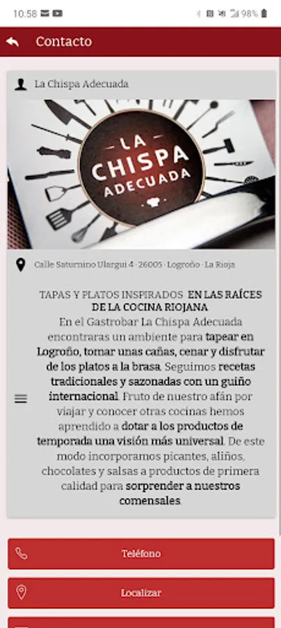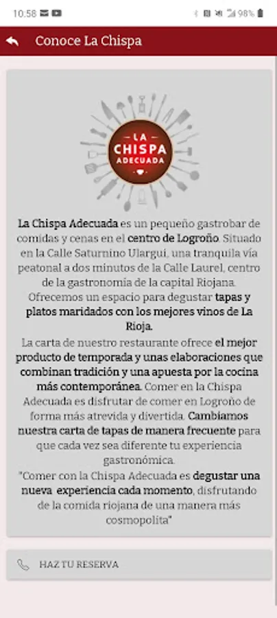 La Chispa Adequada is a small gastrobar for lunch and dinner in the center of Logroño. Located on Calle Saturnino Ulargui, a quiet pedestrian street 2 minutes from Calle Laurel, the center of gastronomy in the capital of La Rioja. We offer a space to taste tapas and dishes paired with the best wines from La Rioja.