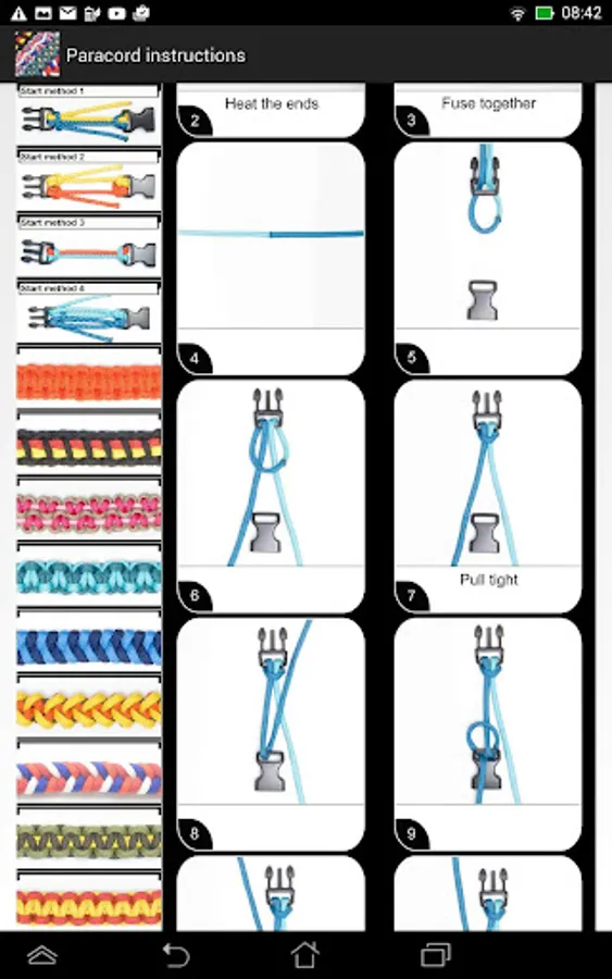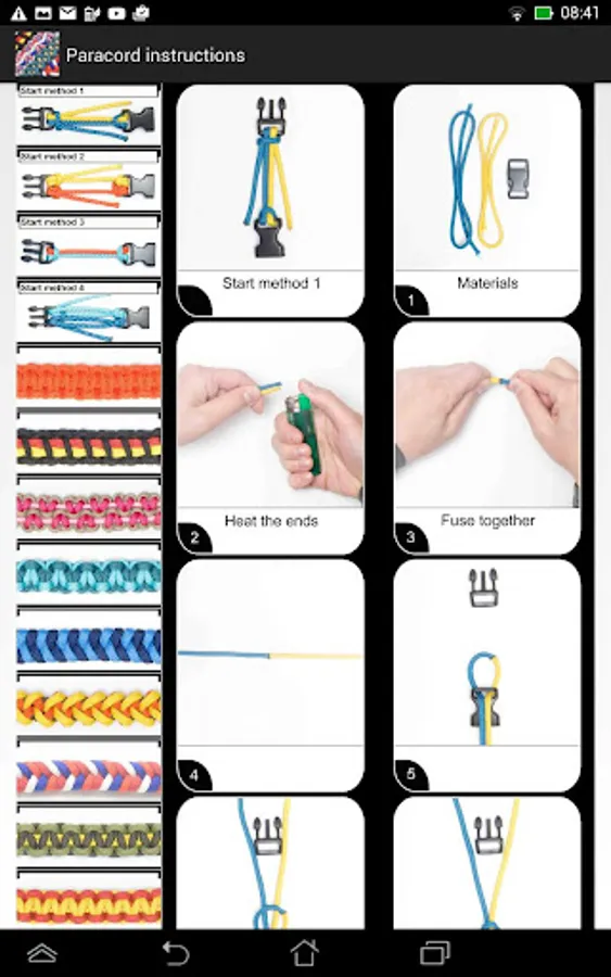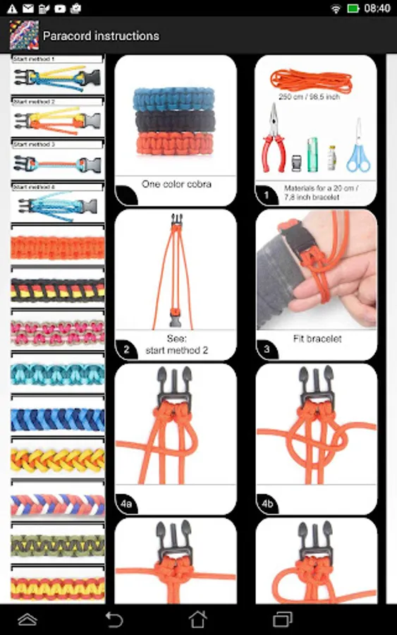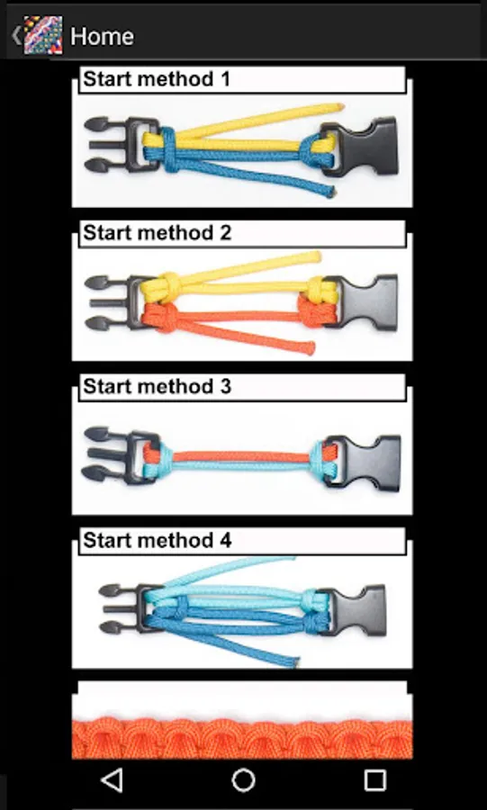 In addition, 4 different methods to start a Paracord bracelet are shown in easy to follow steps.