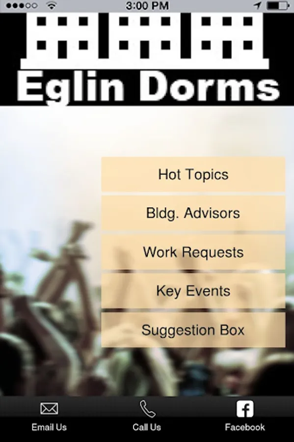 The Eglin AFB Dormitory Application is for all residents and leadership to receive up to date information about the dormitories. Residents can also submit work orders, suggestions, ideas, or other communication directly to the Unaccompanied Housing Management Section or just say hi to their favorite Airman Dorm Leaders (ADL's). This can be done from the comfort of their dorm room, work, or beach!