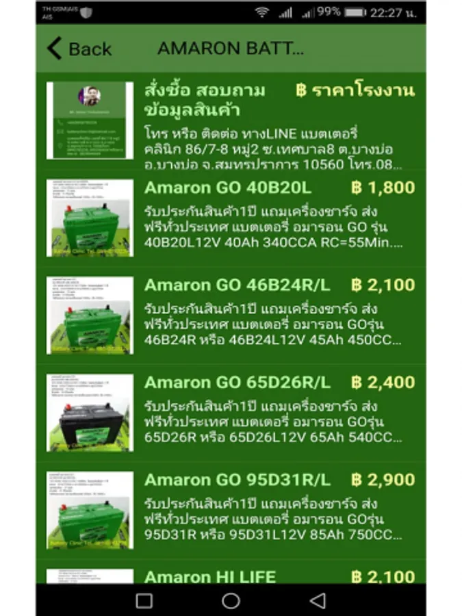 "Bringing together the interaction between users and sellers and providing knowledge about Car Battery "1. Tell the current price specification of all Amaron car batteries in Thailand at present. 2. Can search Battery stores throughout Thailand can be conveniently and quickly separated by region, province, district, district 3. Can inquire to order the battery payment online. Free Delivery in Thailand