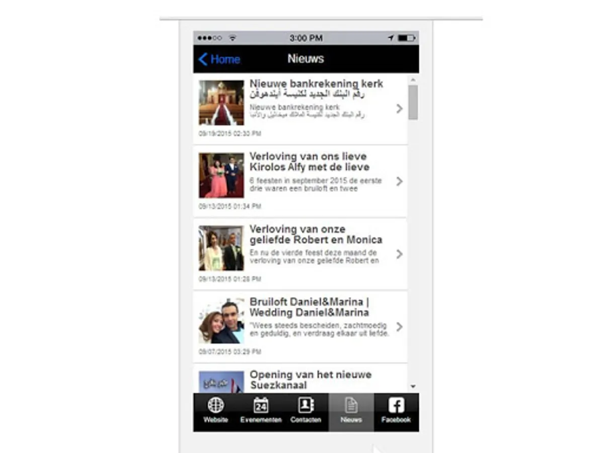 The App contains information, news, photos, church hymns, church books and rites in the three languages where possible, otherwise always in two languages. The App is directly connected to the website and Facebook page of the church of Eindhoven and also to the COPTISCHE TV channel.