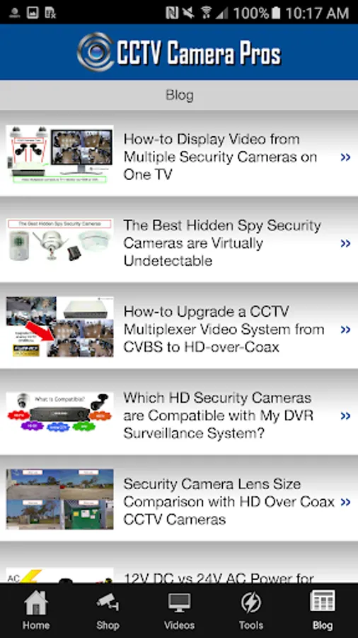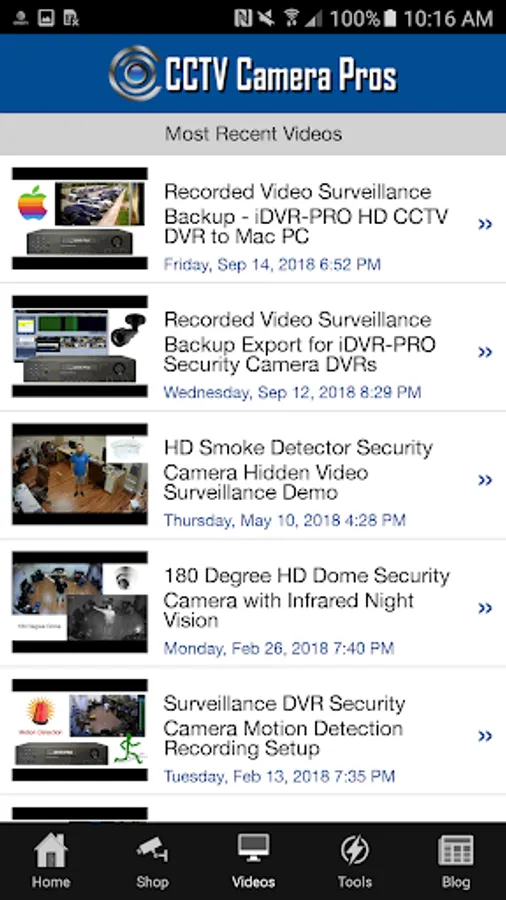 CCTV Camera Pros blog, YouTube channel videos, and Facebook page are also available in the app which contain valuable articles, videos, images, and feedback from customers related to the latest video surveillance equipment that we test and supply.