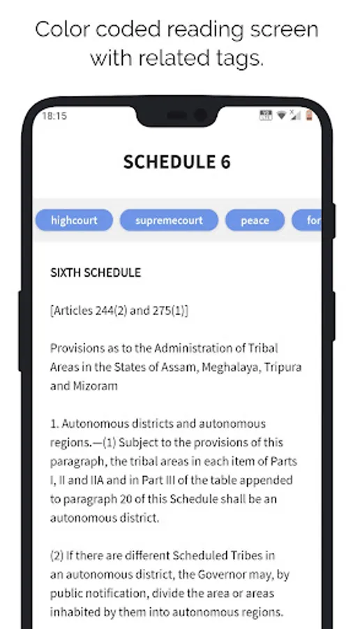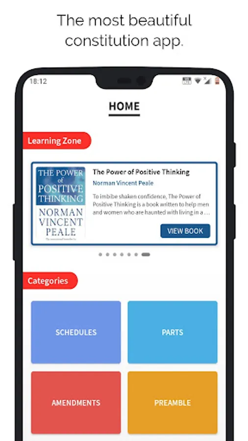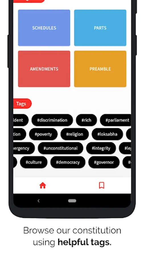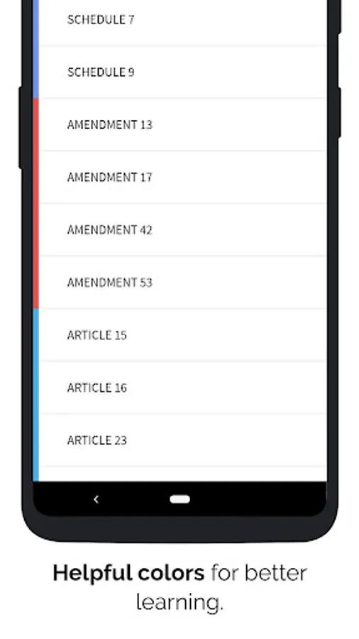 The complete Constitution of India app which includes all the articles, schedules, and amendments as notified by Government of India with simple and elegant user interface.