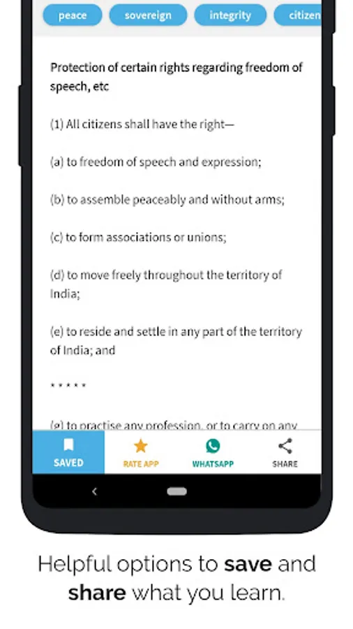 • The app has share feature to easily send your favourite articles, amendments, and schedules in constitution of India to your friends