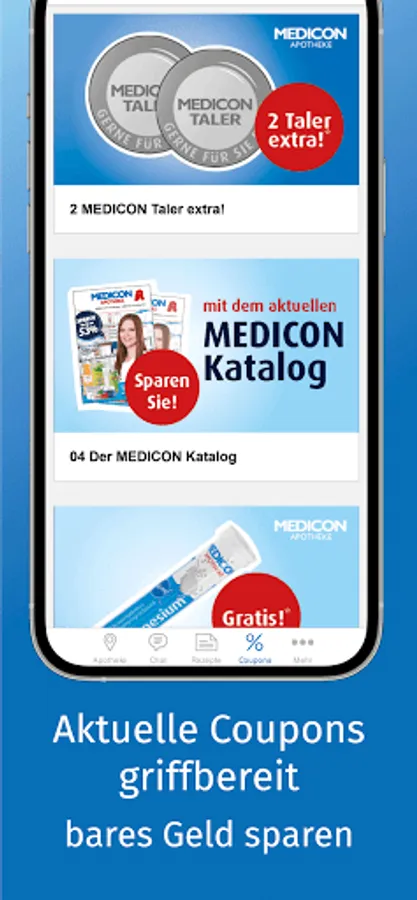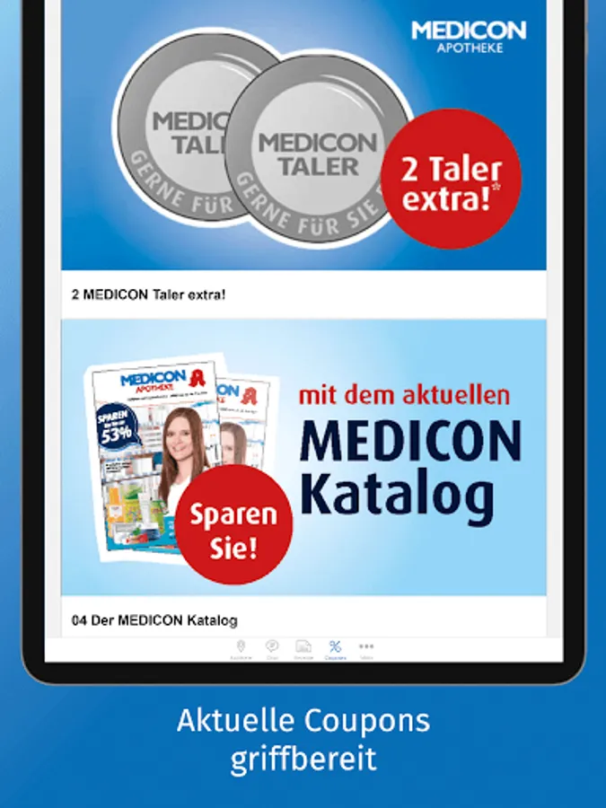 And best of all, you always have the current offers and coupons with you. Simply show the coupons on your smartphone at the checkout and save money or collect a few extra MEDICON thalers.