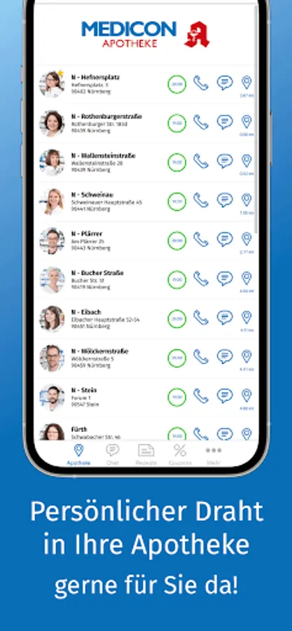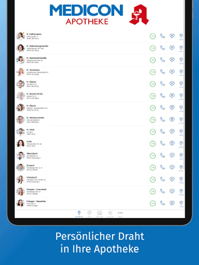 In the future, you can also easily upload or photograph the e-prescription in the M-Chat and reserve or have your medication delivered in the MEDICON pharmacies. Support your regional trade with it. The environment is happy about short distances and little packaging material.