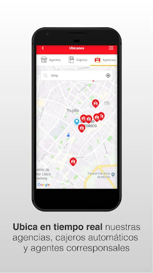 - Locate in real time our agencies, ATMs and correspondent agents.