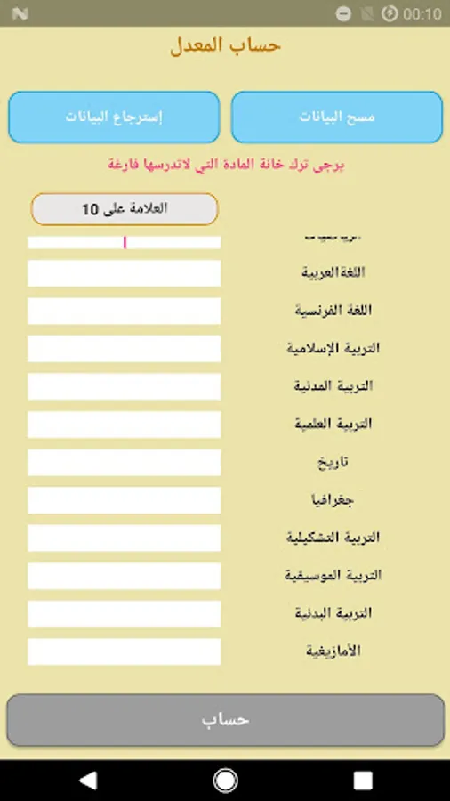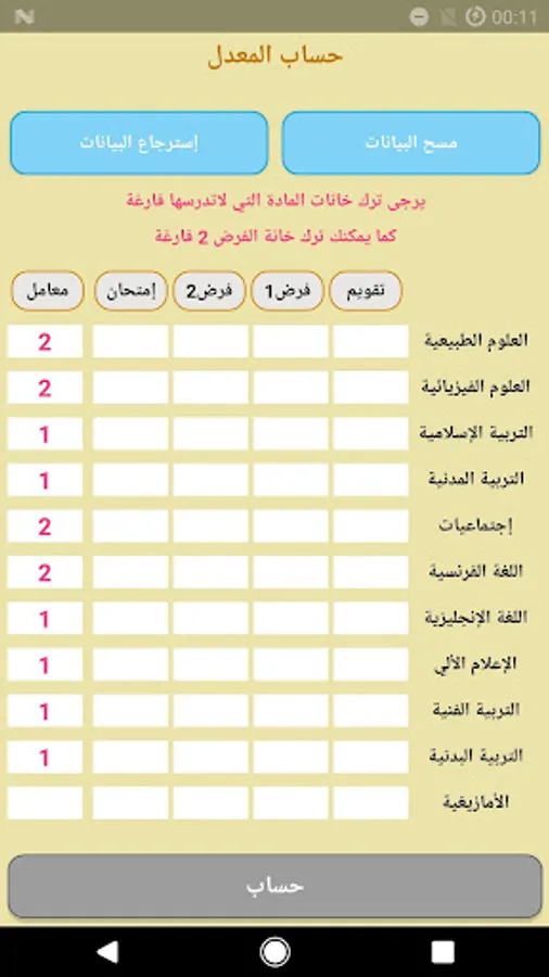 Android application to calculate the secondary, intermediate and primary semester average for all educational stages in Algeria