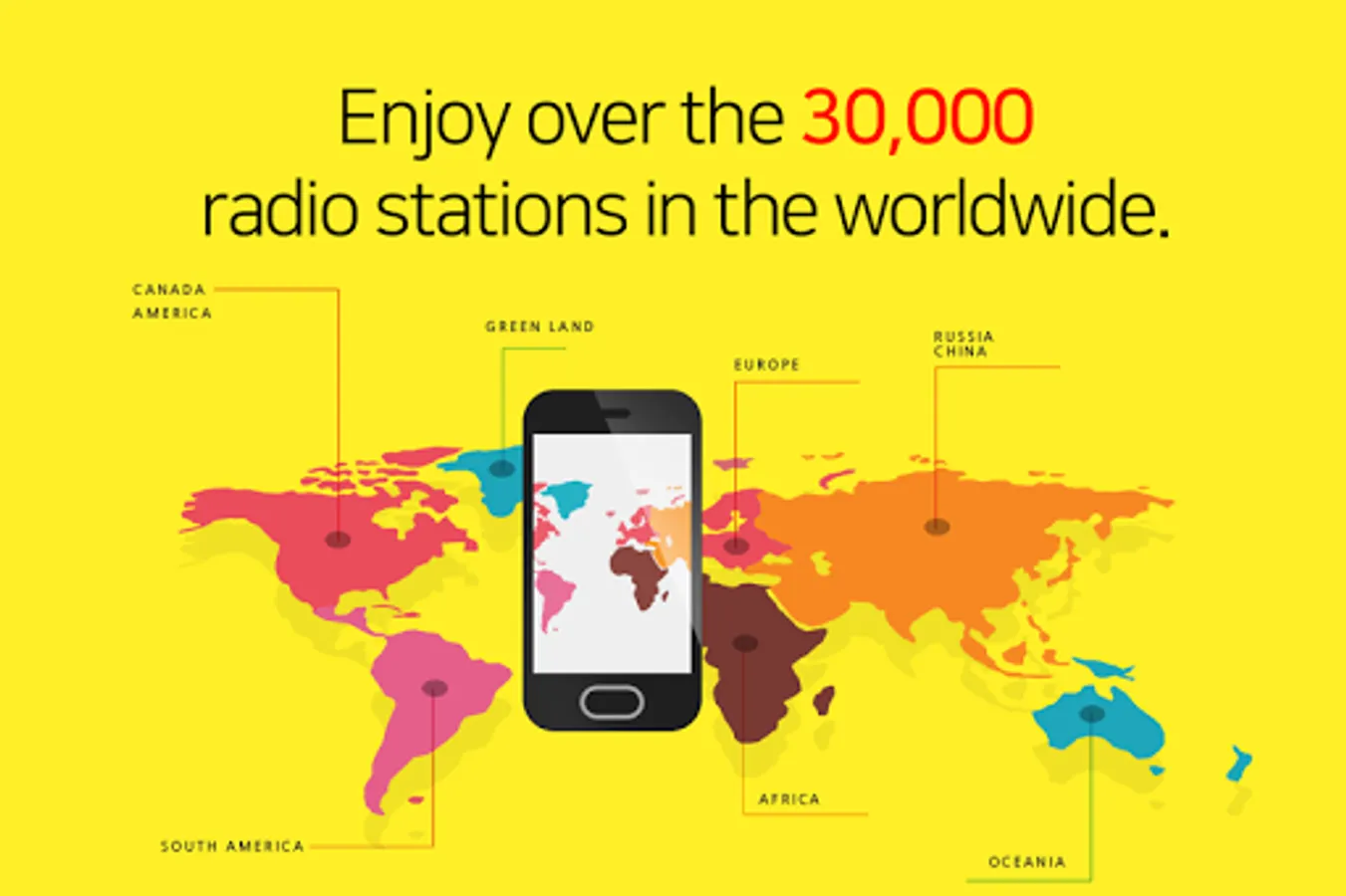 Enjoy over the 30,000 radio stations around the world with nice sounds.