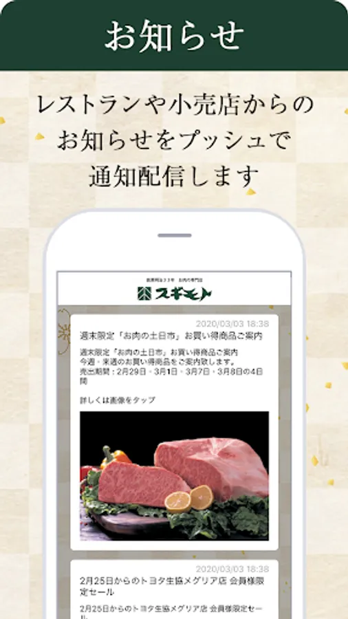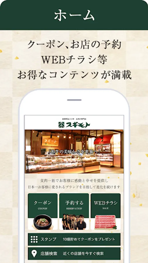 Founded in Meiji 33, the official app of the meat specialty store Sugimoto Group that delivers happiness and excitement with meat has been renewed.