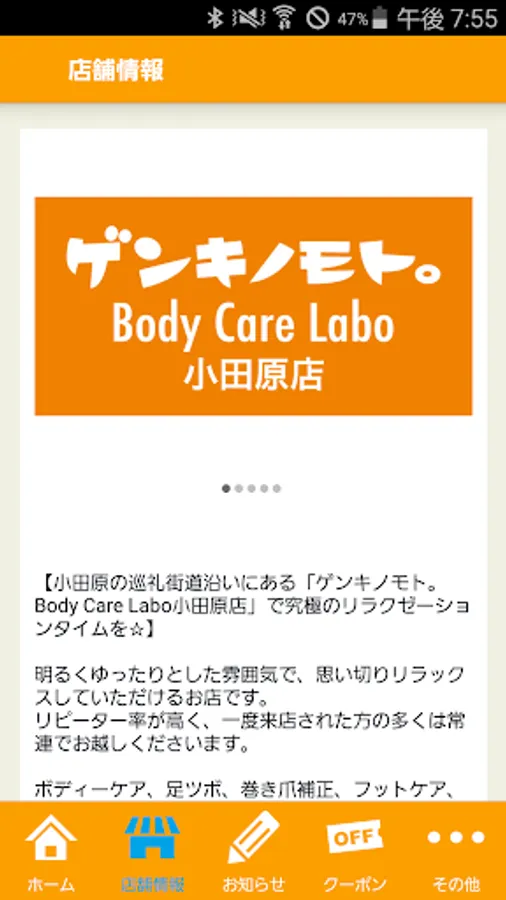 Located on Odawara pilgrimage Road [Genkinomoto. Body Care Labo original app] Odawara store.