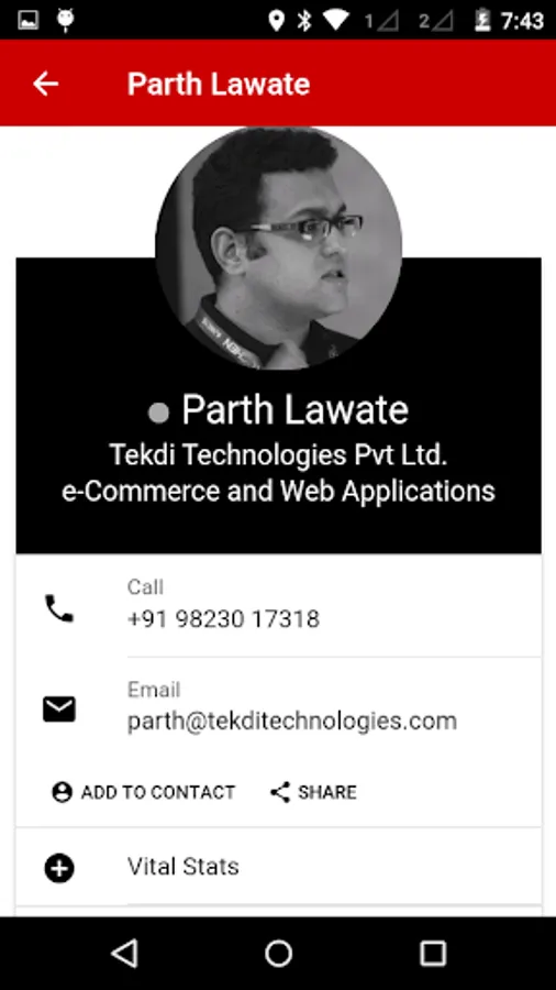 Tap to Call , Add as Contact , Share contact , Tap to Email