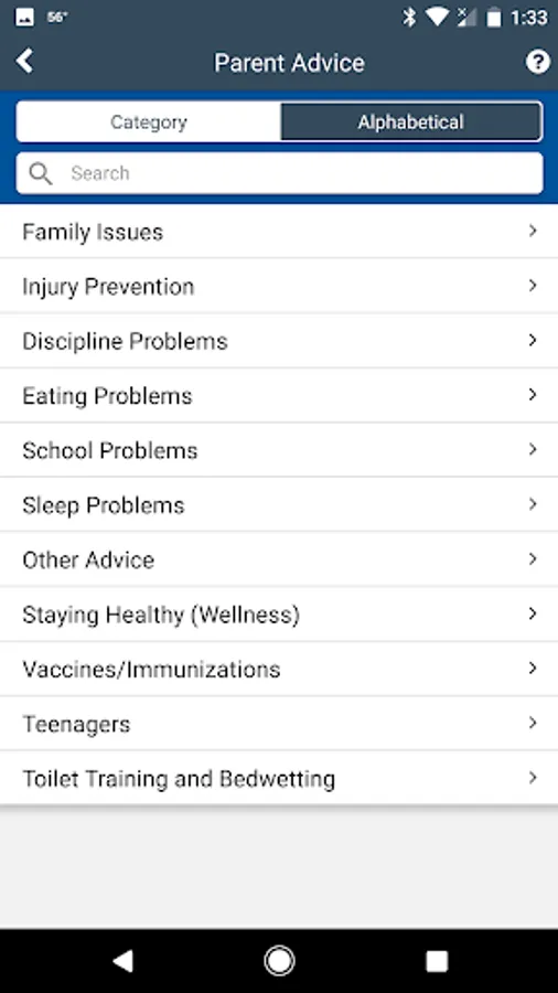 • Symptoms – for help deciding what to do when your child is sick or hurt