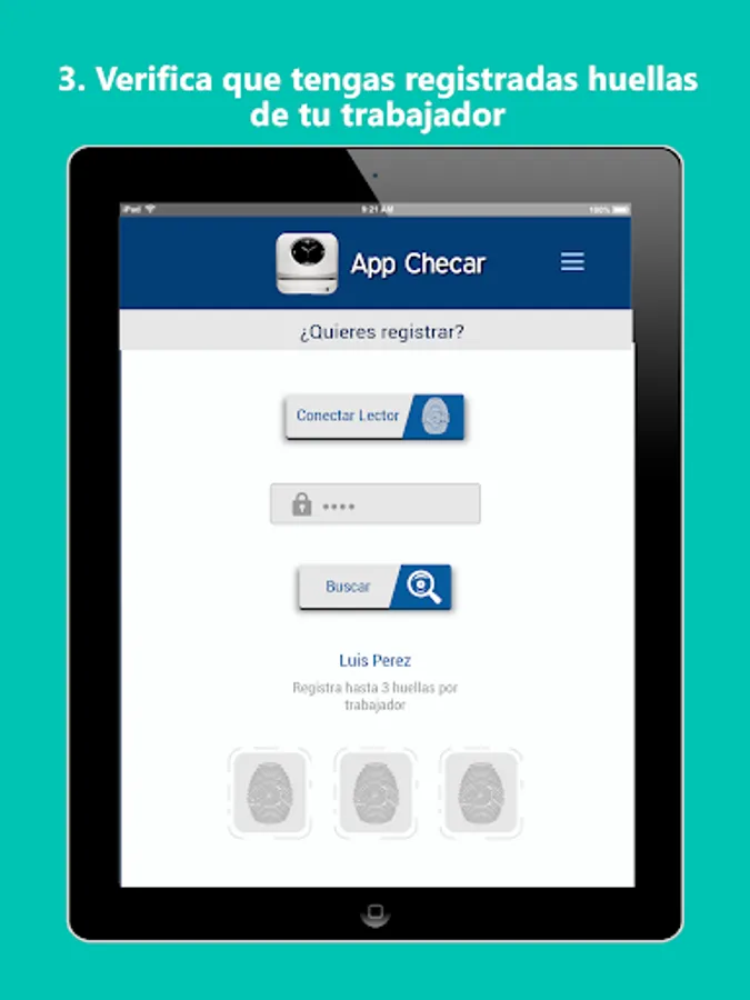 App Check helps you to easily and quickly take control of the entrances and exits of your workers. The most reliable digital check clock made application. Now with your version of fingerprint reader, in which with a single device you can check in and out all your employees through our fingerprint reader.