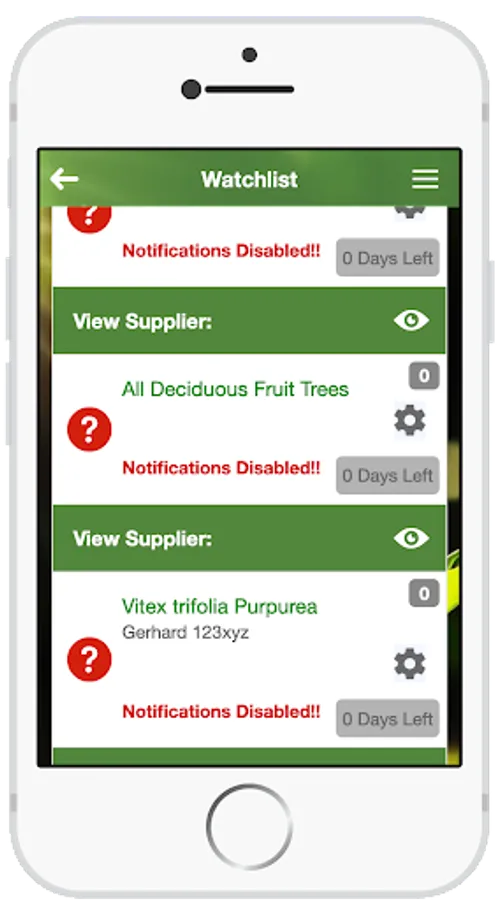 Search and find suppliers of plants and plant related items. Add species and items on your watch list and get notified when a supplier lists the item. Engage with suppliers. Compare prices and availability of items. Easy to find map, showing suppliers in your area.