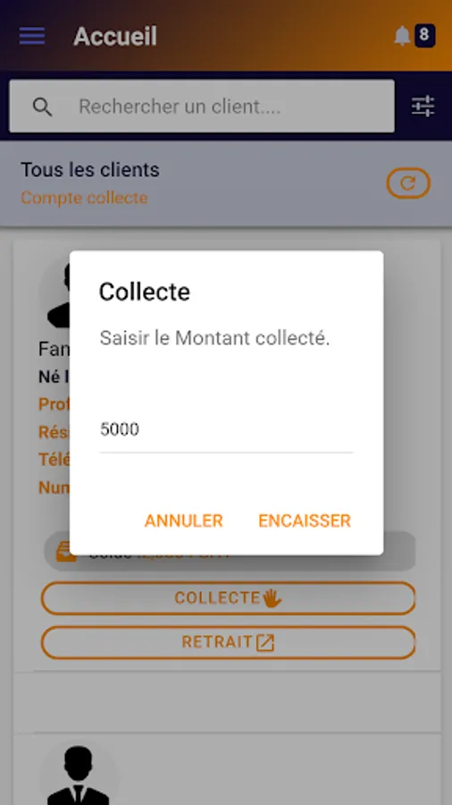 Application for collecting money from micro finance clients. SARKI MONEY CONTRIBUTION case.