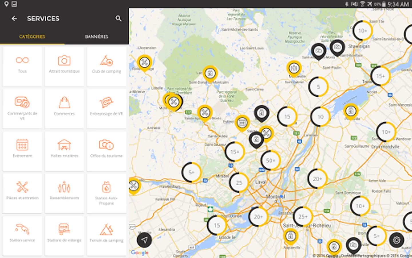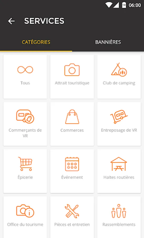 - Check alphabetically or by proximity campsites, petrol stations, shopping and other points of service in connection with camping and caravanning.