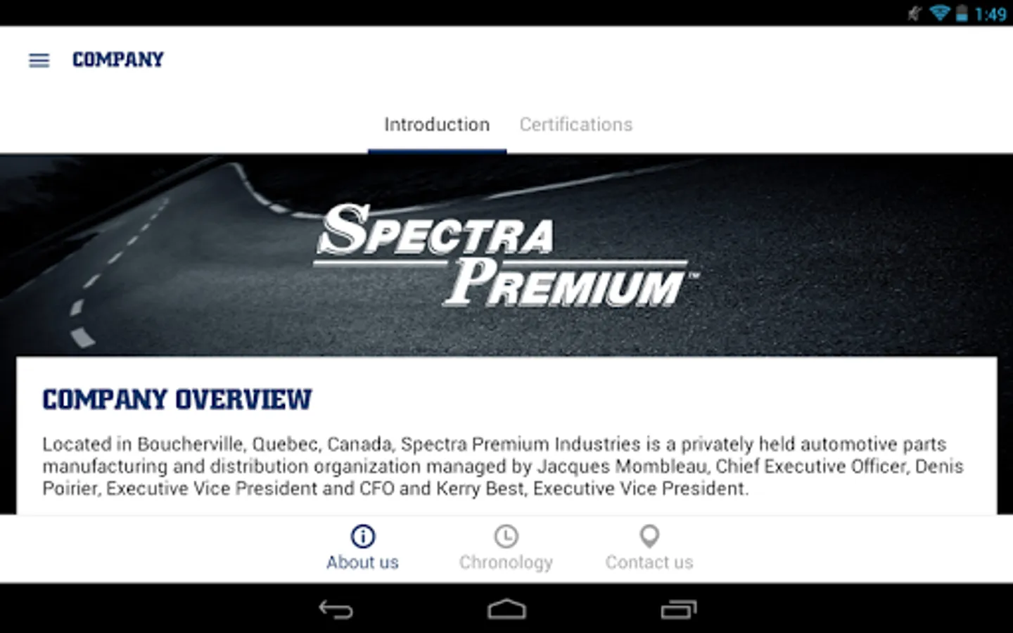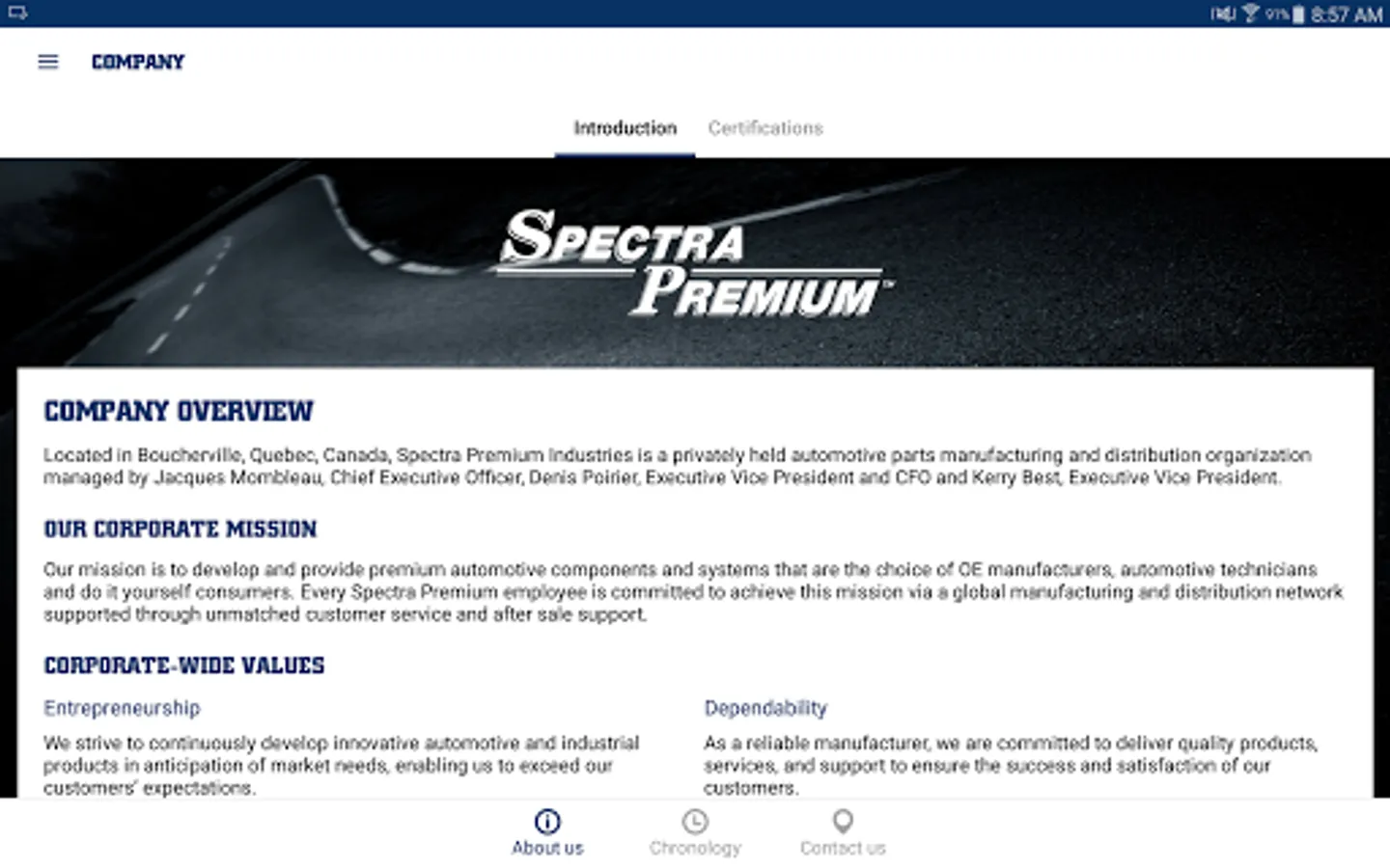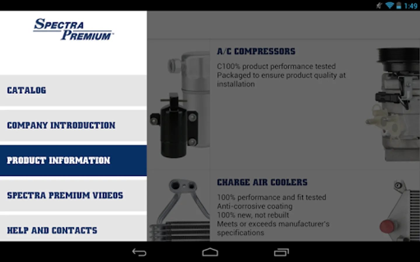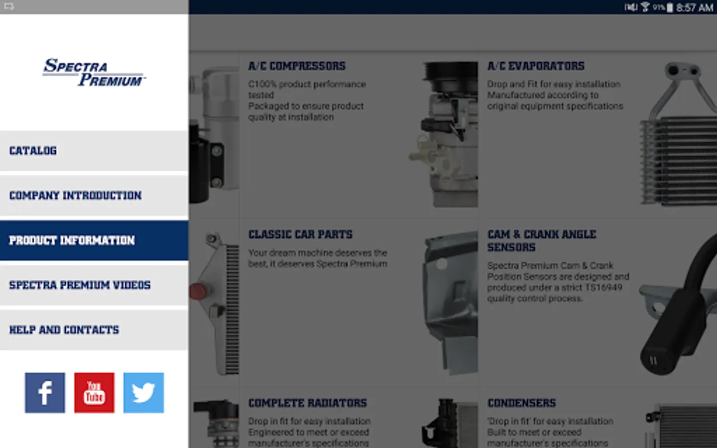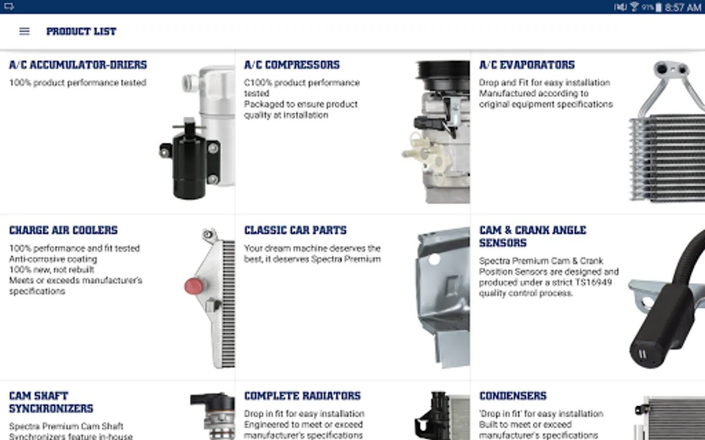 Thanks to the mobile application Spectra, you can easily find parts made specifically for a vehicle: