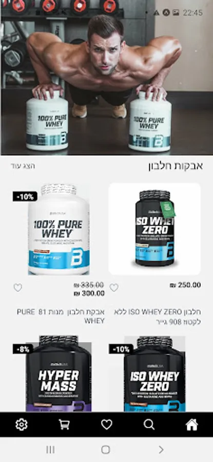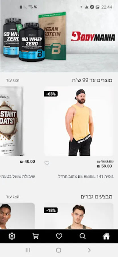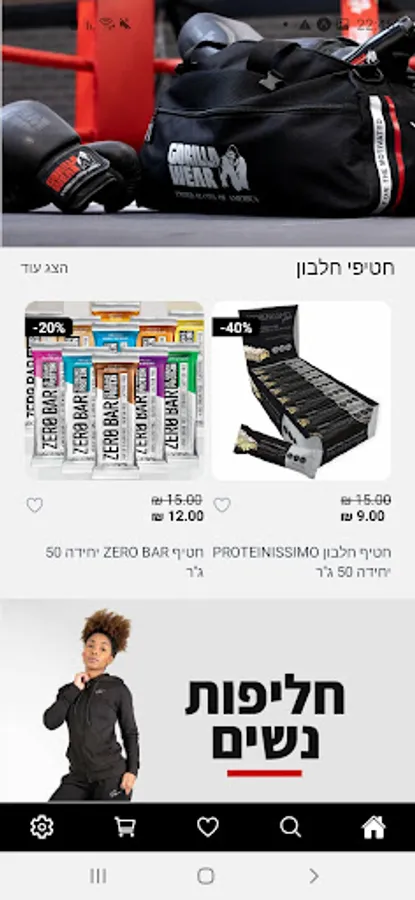 באפליקציה שלנו תמצאו מבחר גדול של בגדי ספורט לנשים וגברים וכן תוספי תזונה במבצעים מיוחדים.