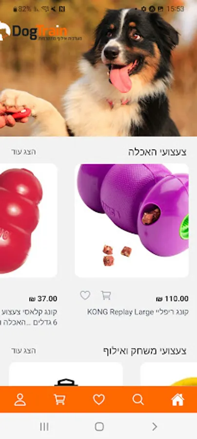 אצלנו תמצאו את כל מה שהכלב שלכם צריך : מזון לכלבים, חטיפים, קולרים, רצועות , ציוד אילוף, ציוד הגנה, אביזרי ספורט ועוד.