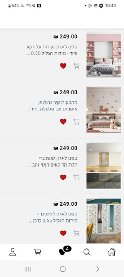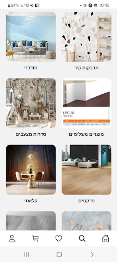 אצלנו באפליקציה תמצאו את שלל מוצרי החברה ובינהם : חיפוי קיר , טפטים, פרקטים, ומוצרים נלווים , גבס, ניצבים, צבע , קרניזים, תקרות אקוסטיות, בנוסף למשרביות.