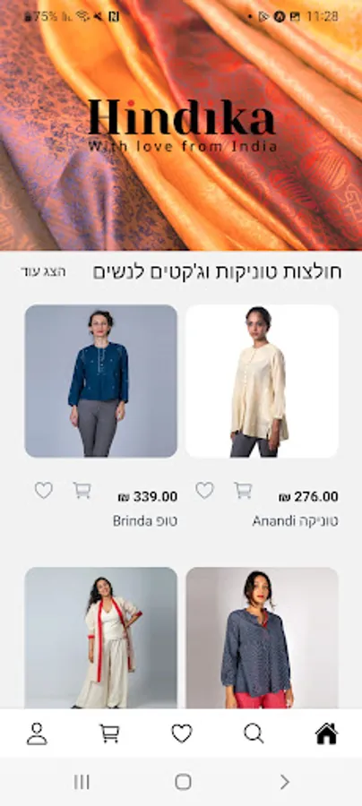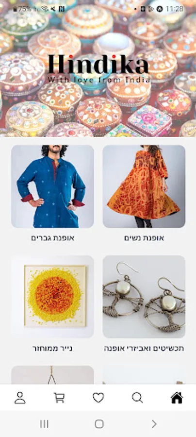 In the Hindika (Little India) application, we have collected for you special items (without the use of animal products) in diverse categories (and more will be added) such as designer clothes that combine natural fabrics with hand weaving and dyeing, antique jewelry alongside special contemporary jewelry, and thousands of recycled paper products (unbelievable which things they make from it), special art pieces for the home, ecological care products that Shlomit herself has been using for years, atmosphere products such as natural incense that does not contain synthetic materials, ecological gift boxes, a crazy collection of exotic musical instruments, sweet wooden toys, amazing cloth dolls and even A nice variety of furniture with a fine design and finish..