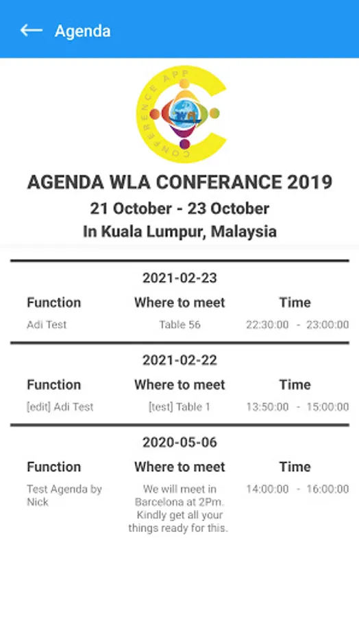 WA Conference App Screenshots