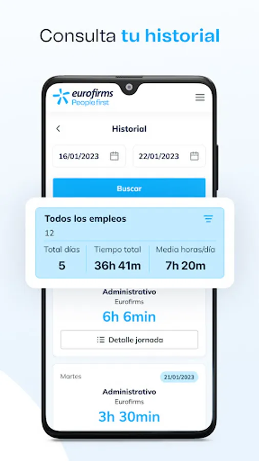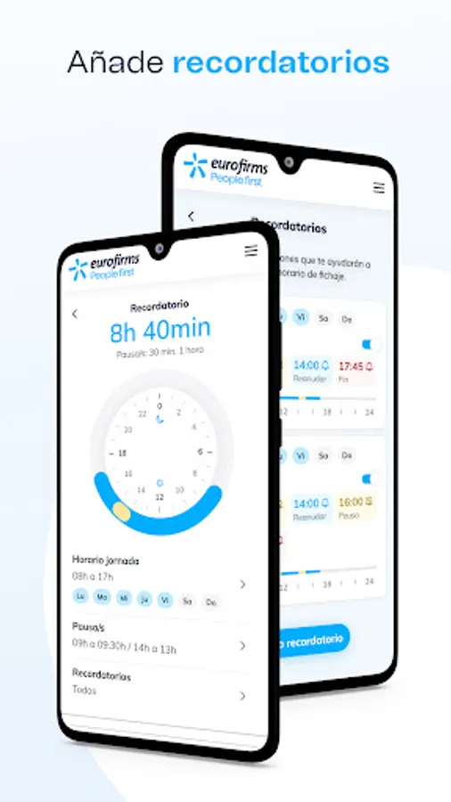 The Eurofirms Time Control App is a tool designed so that the worker can record the hours of entry and exit from work.
