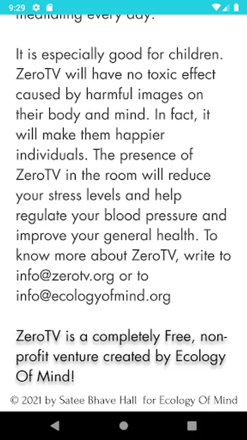 ZeroTV is an organic viewing experience in today's world of toxic media explosion! It is created by Ecology Of Mind. It is completely stressfree and anxiety-free viewing! It is good for children. Regular viewing of the ZeroTV programme is good for mental and physical wellbeing. It supports happiness education. ZeroTV - the online TV Channel is free! Just log on and start viewing.