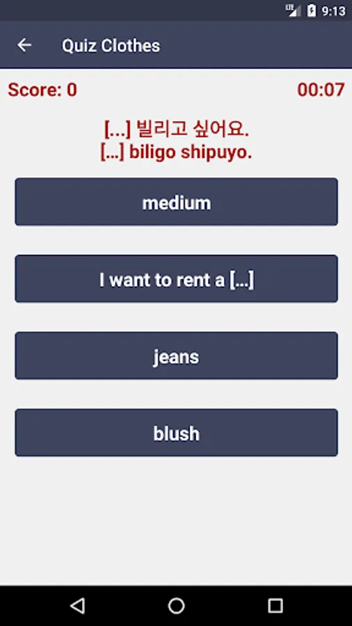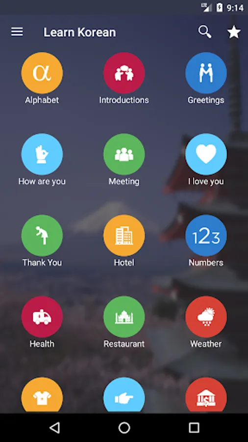 "Learn Korean - Grammar" include over 5000+ phrases with 60 categories(Greetings, How are you, Meeting, I love you, Thank You, Hotel, Numbers, Korean Hotel phrases, Health, Restaurant, Weather, Clothes, Describing people, Love and Romance, Korean Expressions, Going out, Questions, Airport...) serve the purpose at tourists and business people visiting Korean